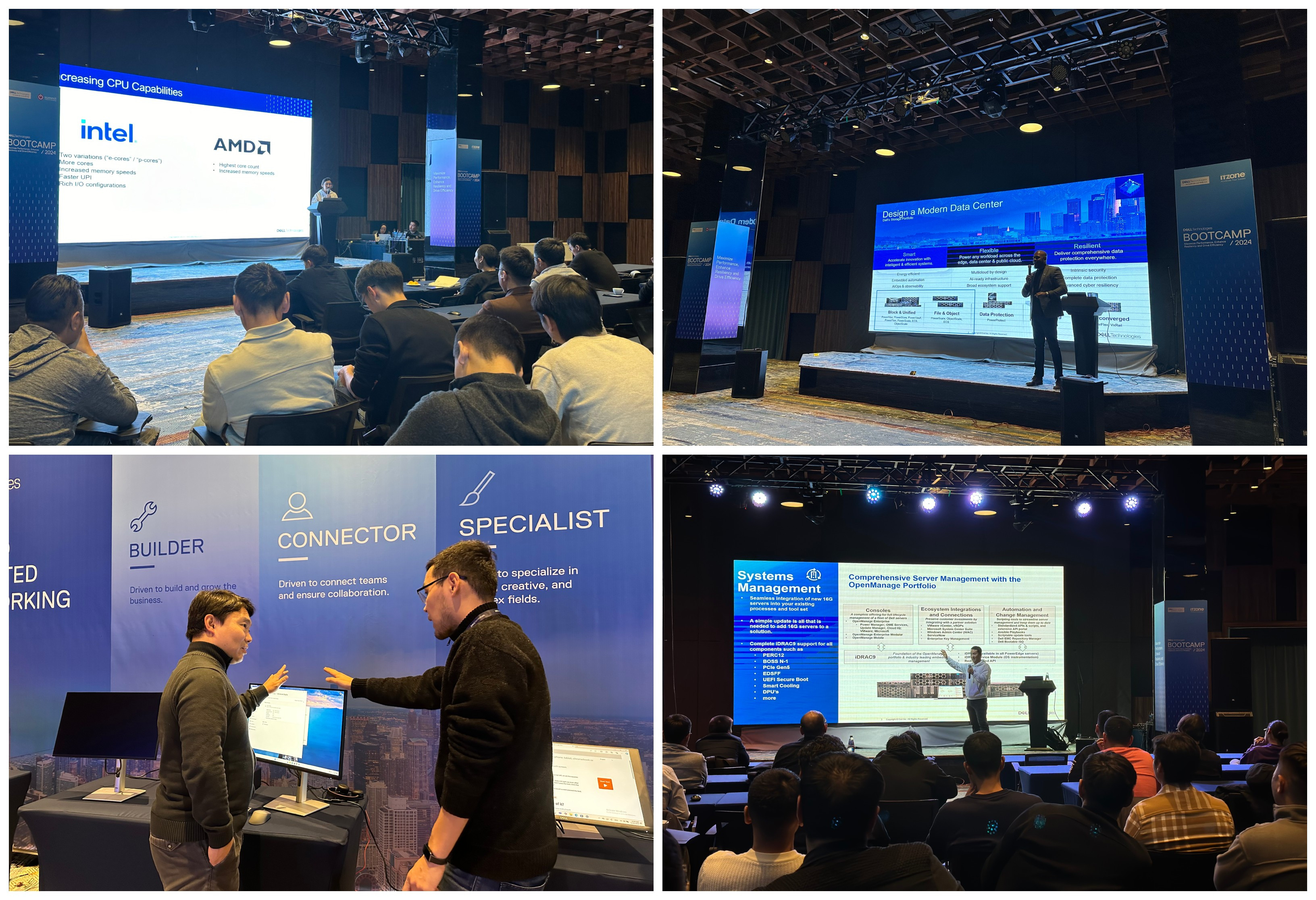 Bootcamp-н эхний хэсэгт PowerStore, PowerScale, PowerEdge -н шинэчлэлүүдийг онцолж тайлбарласнаар оролцогчид эдгээр технологийг өөрсдийн байгууллагад хэрхэн оновчтой нэгтгэж мэдээллийн аюулгүй байдлаа хангахын зэрэгцээ ерөнхий гүйцэтгэлээ сайжруулах талаар судалж, идэвхтэй хэлэлцүүлэг өрнүүлсэн бол үргэлжлүүлэн байгууллагад түгээмэл тулгардаг уян хатан байдал, сул зогсолт, кибер халдлагын дараа хурдан сэргэх зэрэг асуудлыг хөндөж Open Networking болон Cyber Resiliency сэдвийн хүрээнд дэлгэрэнгүй мэдээлэл хүргэж бодит кейс хуваалцсан юм.