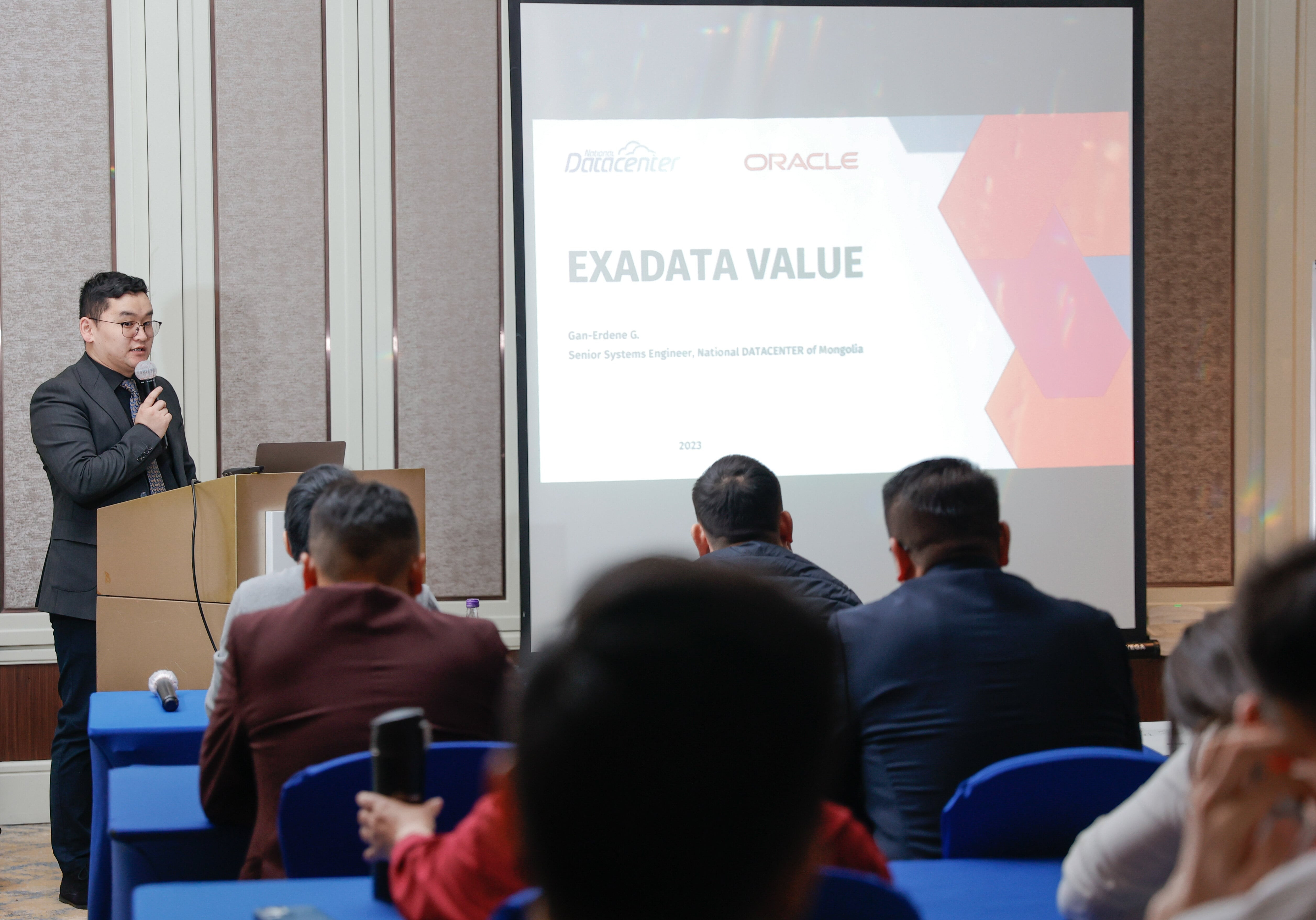 Oracle Exadata нь олон мянган хэрэглэгчдэд асар их үнэ цэн өгөх хүлээн зөвшөөрөгдсөн инженерийн систем. Тэр дундаа Монгол улсын хэмжээнд Exadata ашигласнаар байгууллагууд ямар үнэ цэн авч байгаа талаар “Үндэсний Дата Төв”-ийн системийн ахлах инженер Г.Ган-Эрдэнэ арга хэмжээний үеэр өөрийн туршлага, практикаасаа хуваалцлаа.